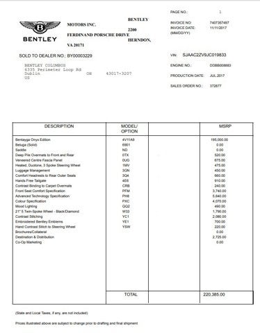 - Vehicle Name: Bentley Bentayga