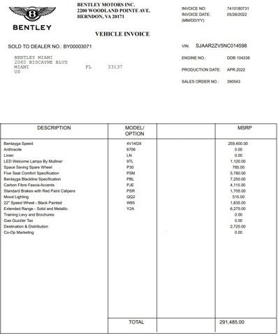 - Vehicle Name: Bentley Bentayga