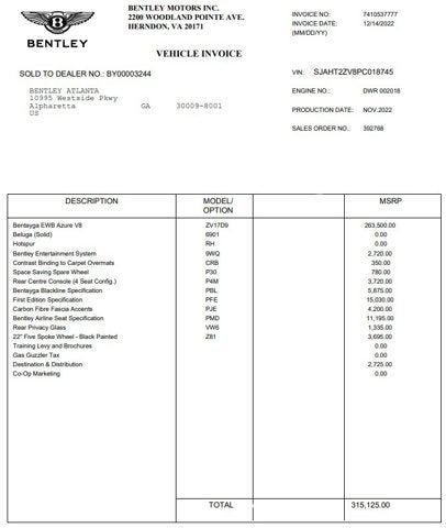 - Vehicle Name: Bentley Bentayga EWB